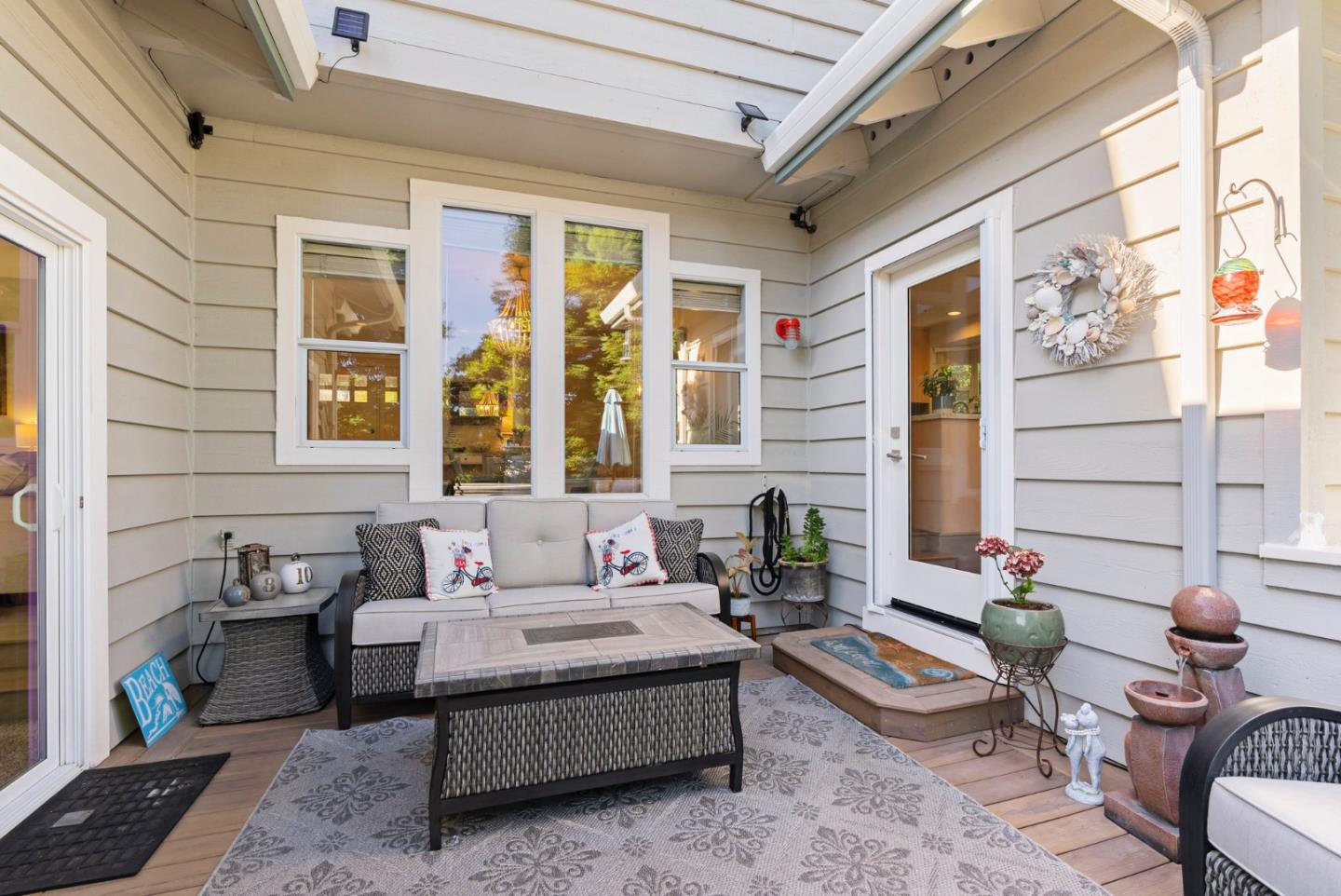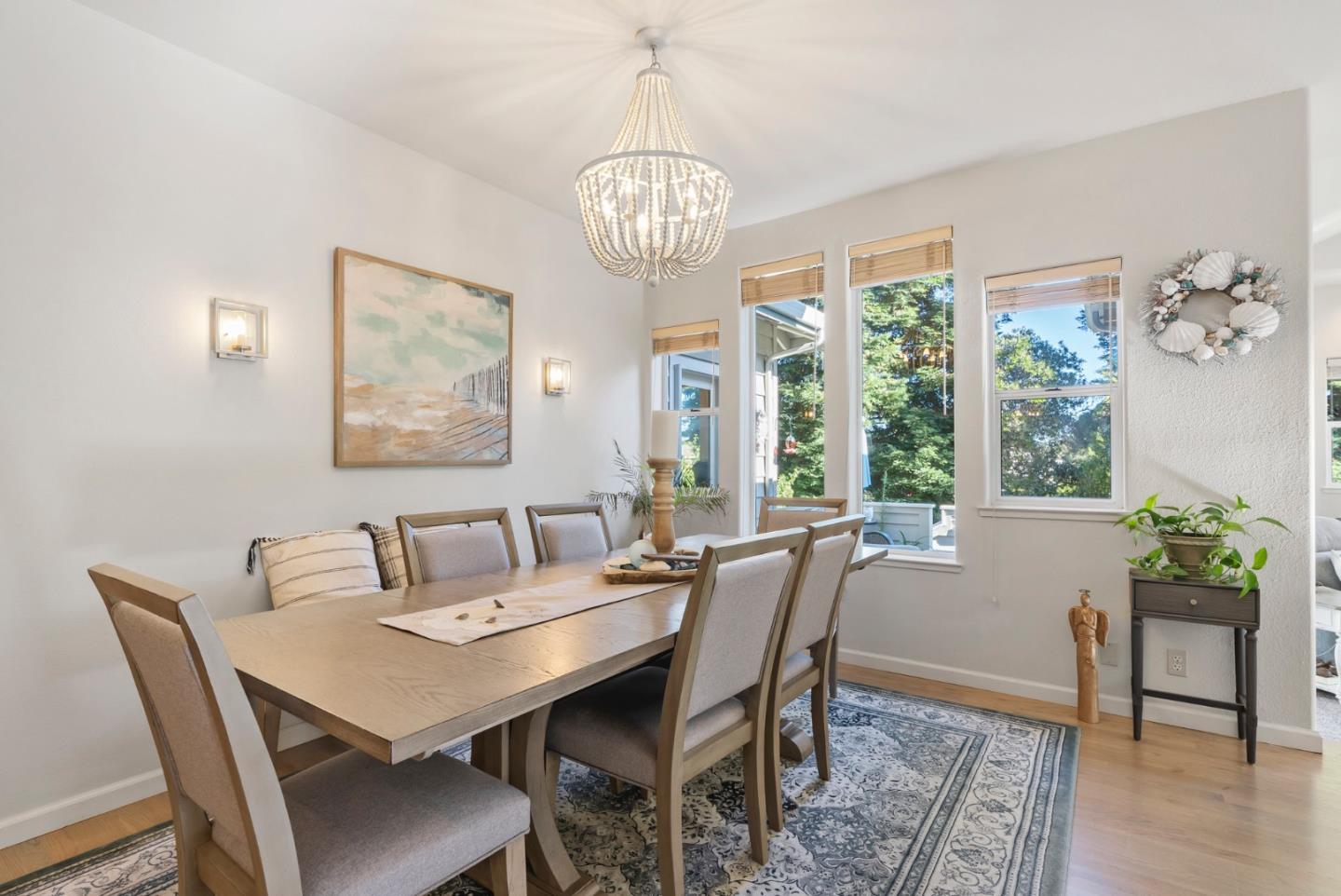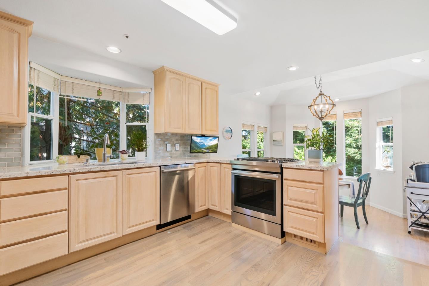 Rare opportunity to purchase your personal palace in the highly coveted Meadow Ranch Estates, an exclusive neighborhood, with beautiful hillside views that is located within minutes of shopping, restaurants, and beaches. Located on the greenbelt (a beautiful park like setting with river rock & bridges) off of Trout Gulch Road, you'll enjoy the tranquility of country living and proximity to Aptos Village. Built in 1989, this beautifully remodeled modern 2,677 sq. foot home is situated near Nisene Marks State Park and boasts a huge 7,623 sq. foot lot. There are 4 bedrooms and 3 full immaculate bathrooms. Additional interior features include new oak hardwood floors, granite countertops, stainless steel appliances, a sunken living room, vaulted ceilings, skylights in the primary bedroom with new fencing in the yard that connects to the gorgeous greenbelt accessed directly from the backyard. Every room is bathed in natural light. This opportunity won't last. Schedule a viewing today!