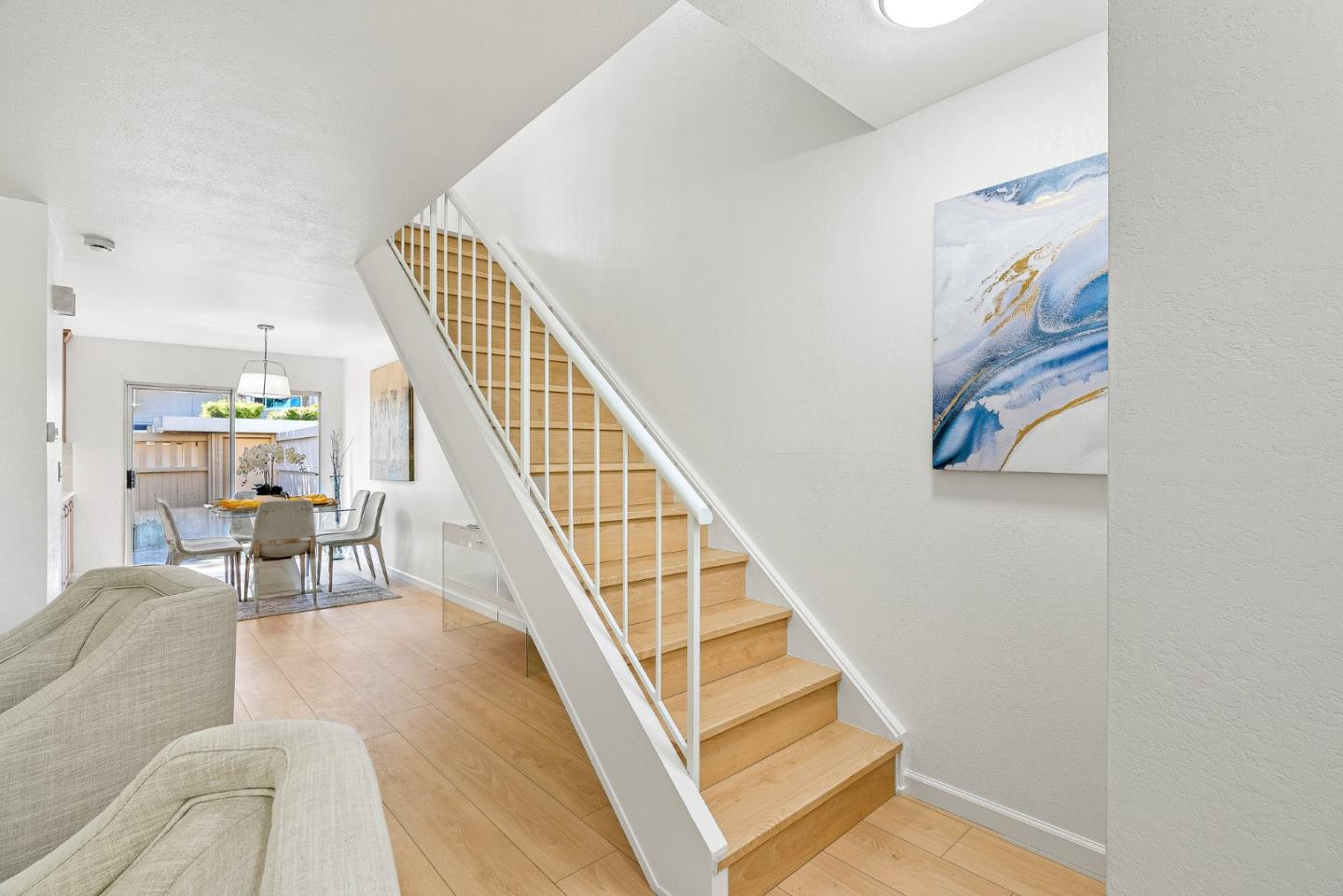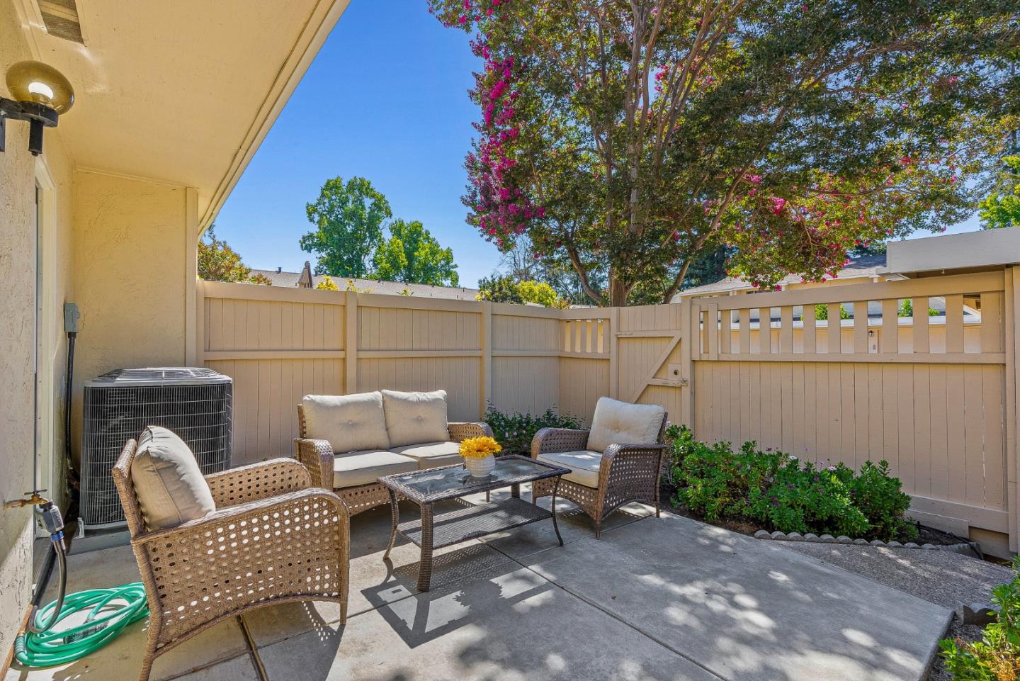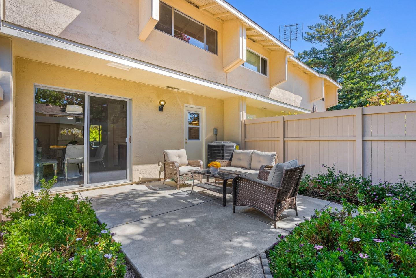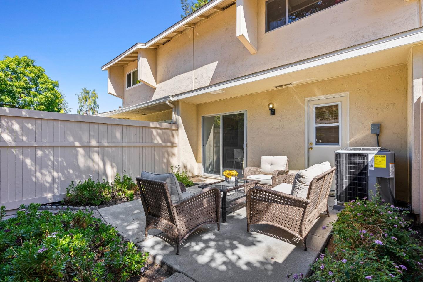 Welcome to 1273 Picasso Drive! This beautifully updated 2 story townhouse sits in the sought after Sunset Oaks neighborhood of Sunnyvale. Step inside to brand new luxury vinyl plank flooring which runs throughout, adding warmth and lasting comfort to every room. The freshly remodeled kitchen features sleek countertops, stainless steel appliances, and plenty of cabinet space for all your cooking and entertaining needs. Both bathrooms have been refreshed with bright, clean finishes. Unwind in your private courtyard patio, a serene outdoor space perfect for morning coffee or evening barbecues, with convenient access to the attached garage. The community itself is surrounded by mature trees and features a sparkling pool, sauna, and clubhouse. Conveniently located near Stocklmeir Elementary, Cupertino Middle, and Fremont High, and just minutes to Apple, Google, LinkedIn, shopping, dining, and parks, with easy access to 280 and 85. This home is the perfect blend of comfort, convenience, and community in the heart of Silicon Valley.
