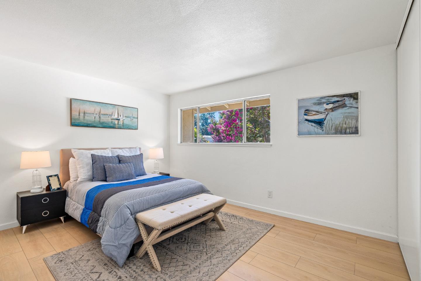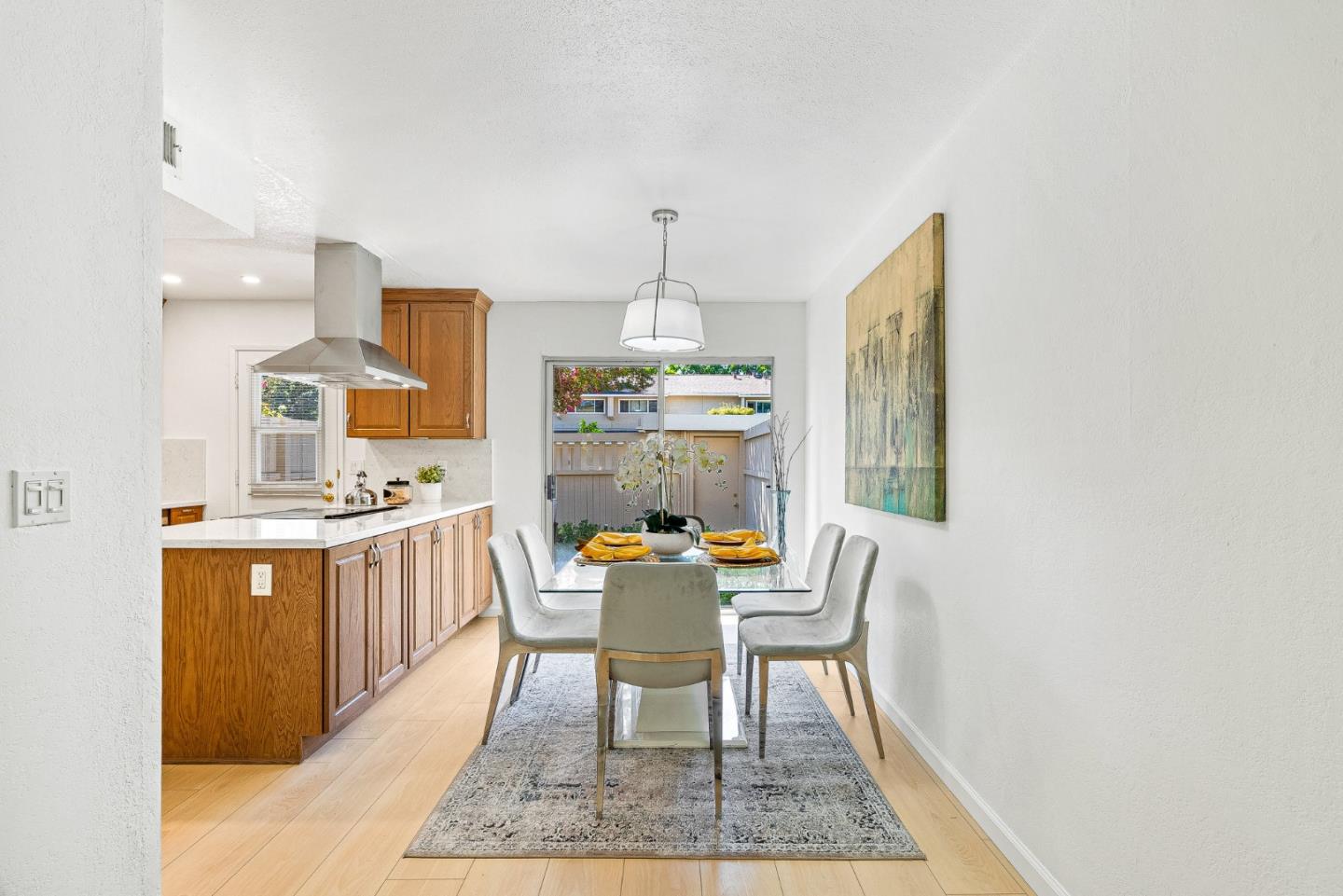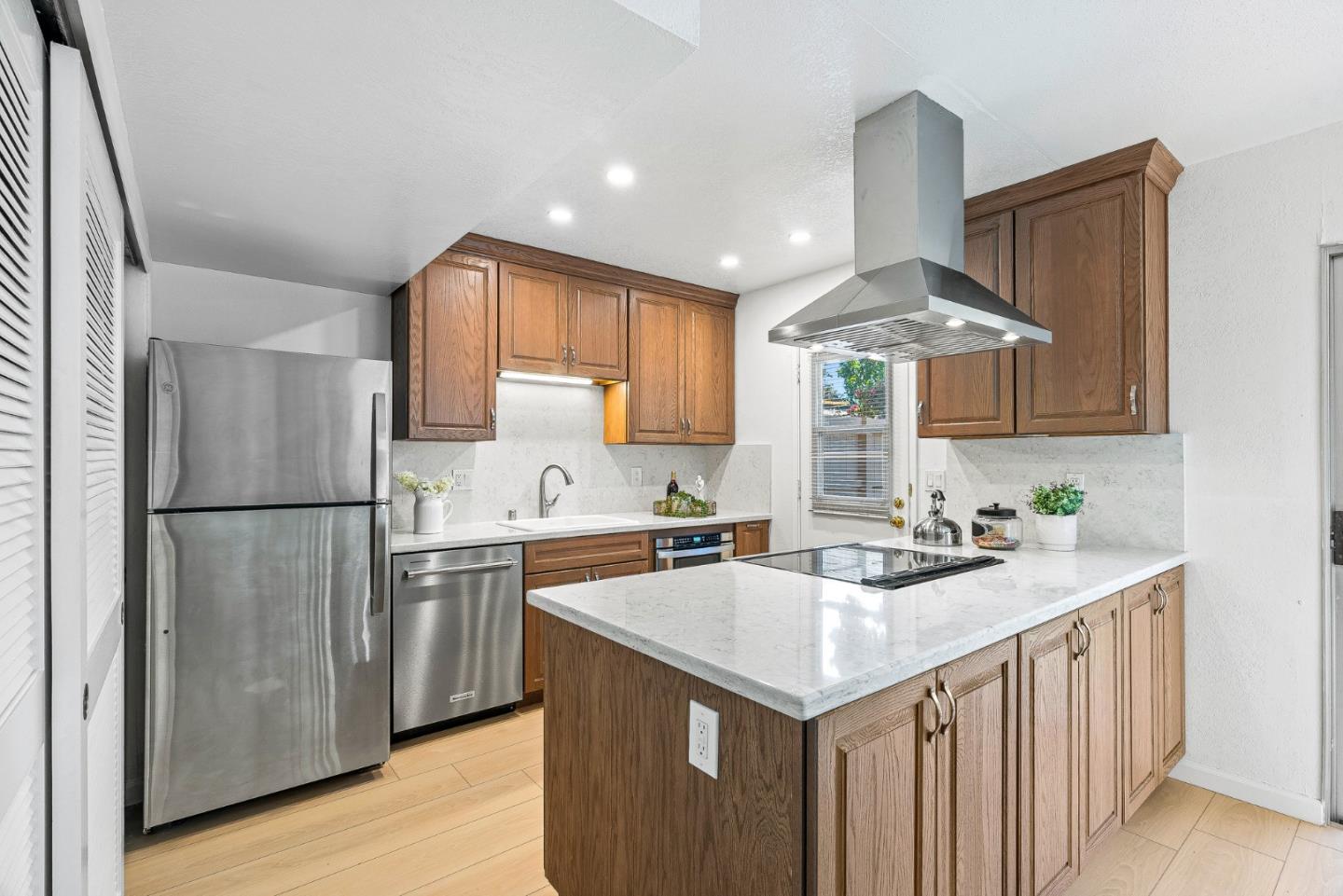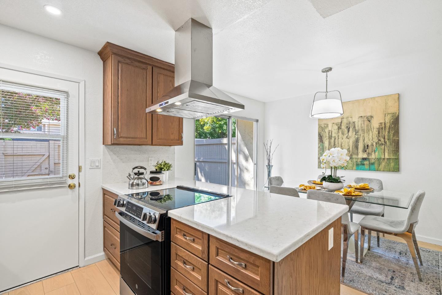 Welcome to 1273 Picasso Drive! This beautifully updated 2 story townhouse sits in the sought after Sunset Oaks neighborhood of Sunnyvale. Step inside to brand new luxury vinyl plank flooring which runs throughout, adding warmth and lasting comfort to every room. The freshly remodeled kitchen features sleek countertops, stainless steel appliances, and plenty of cabinet space for all your cooking and entertaining needs. Both bathrooms have been refreshed with bright, clean finishes. Unwind in your private courtyard patio, a serene outdoor space perfect for morning coffee or evening barbecues, with convenient access to the attached garage. The community itself is surrounded by mature trees and features a sparkling pool, sauna, and clubhouse. Conveniently located near Stocklmeir Elementary, Cupertino Middle, and Fremont High, and just minutes to Apple, Google, LinkedIn, shopping, dining, and parks, with easy access to 280 and 85. This home is the perfect blend of comfort, convenience, and community in the heart of Silicon Valley.