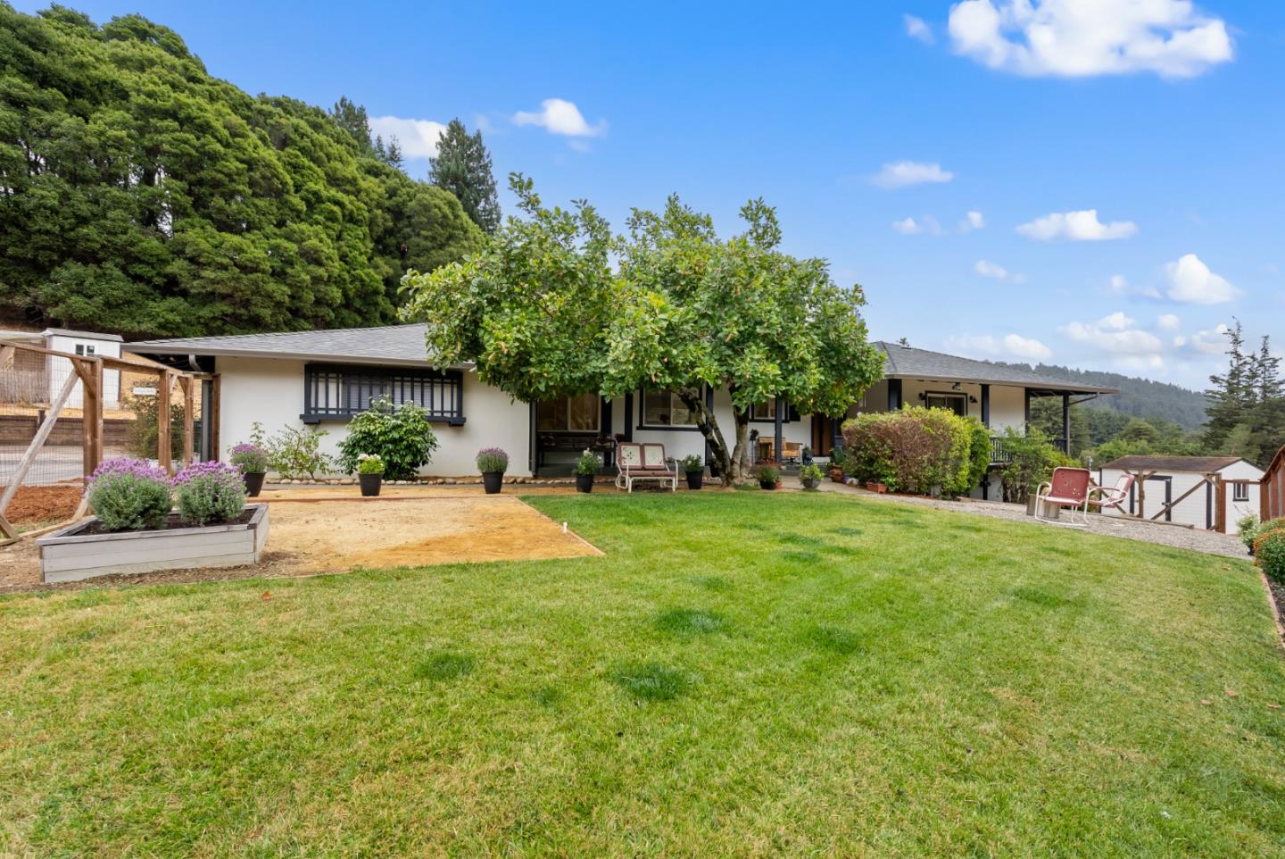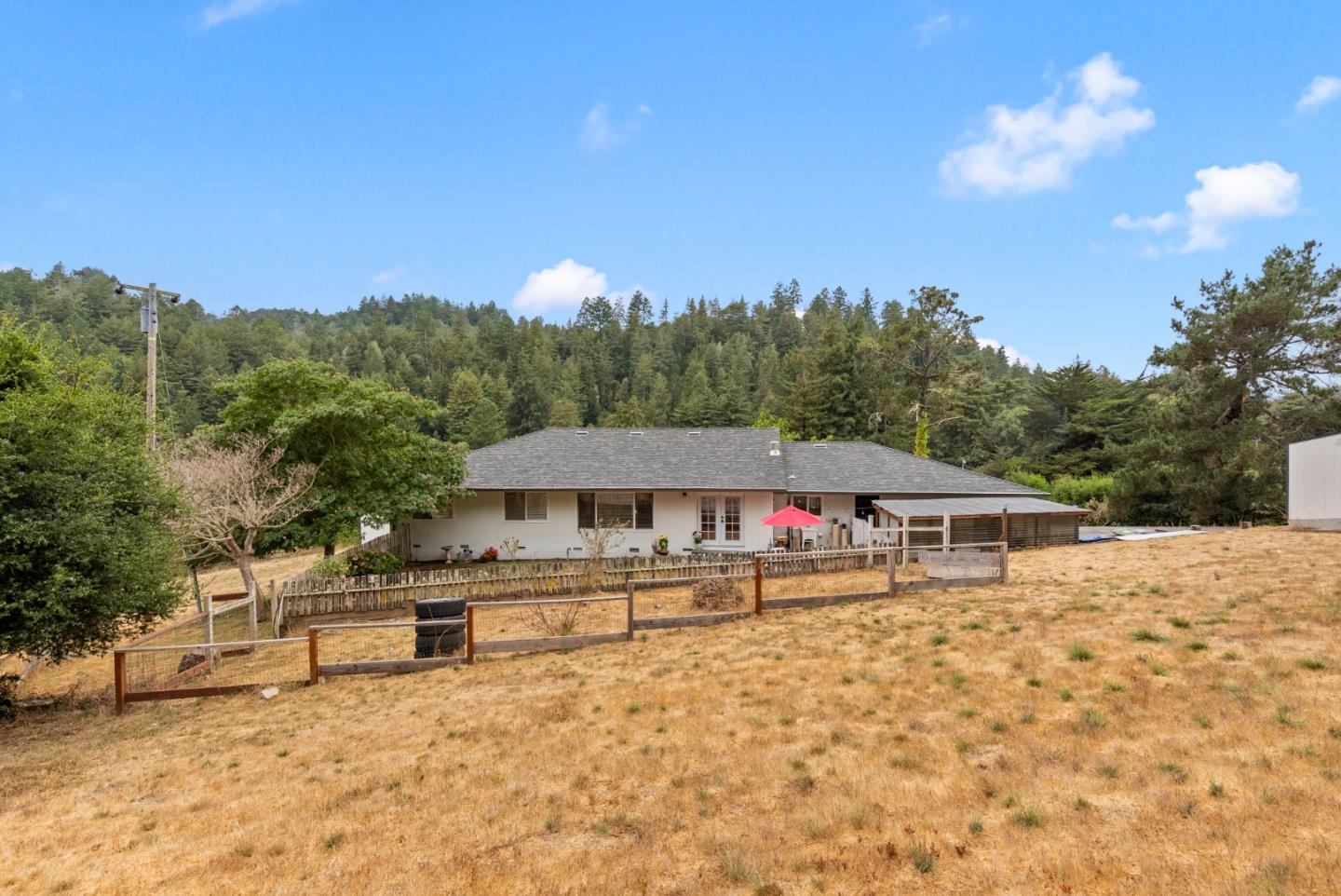 Welcome to this beautifully updated home nestled in the scenic hills of Soquel. This 3-bedroom, 2-bath home sits on a generous .97-acre lot and includes an adjacent 1.14-acre parcel, offering endless potential for expansion, gardening, livestock or sell/develop the bonus parcel. Step inside to discover a newly remodeled kitchen that's a chefs dream, featuring sleek countertops, modern cabinetry, and top-of-the-line stainless steel appliances. The open floor plan seamlessly connects the kitchen to the spacious living room and dining room, where new hardwood floors, recessed lighting, and large windows create a bright, inviting atmosphere perfect for entertaining or relaxing by the fireplace. Outside, enjoy your morning coffee on the large deck overlooking your private, tree-studded oasis or barbeque on the brick back patio. With easy access to nearby beaches, local wineries, and the charm of Soquel Village, this property offers both tranquility and convenience. Don't miss this rare opportunity to own two parcels with endless possibilities. New roof and well equipment, too. Ready for you to move right in!