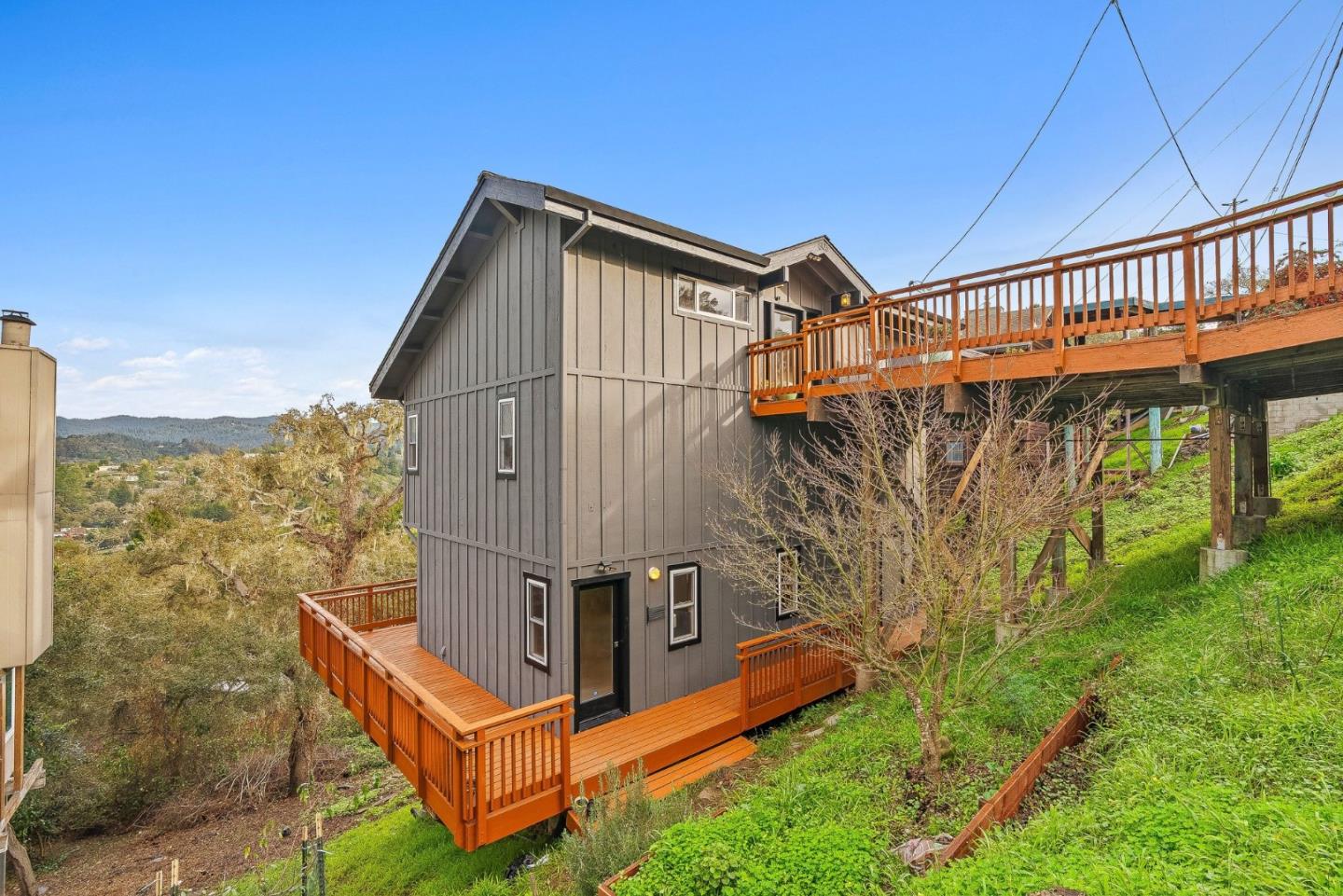 Perched above Rio Del Mar on a quiet Aptos street, this charmingly crafted home offers gorgeous mountain views and a bright, open feel. Built in 2000, it features 1 bedroom, 2 baths and spans nearly 1,400 square feet. The third floor (top floor) entry leads to two loft areas on either side, perfect for a home office, study, or creative space. These overlook the open-concept living room, kitchen, dining area, and a well appointed wet bar area, creating a layout that's ideal for entertaining or simply enjoying everyday life. Custom woodwork throughout adds warmth, character, and a sense of timeless craftsmanship. The spacious primary bedroom is a peaceful retreat featuring a large walk-in closet, soaking tub, and stunning views from the private deck. The location is hard to beat, set above Rio Del Mar, close to the beach, shops, and all that Aptos has to offer. With a rare blend of views, privacy, and proximity, this home offers coastal living with a refined mountain escape feel.